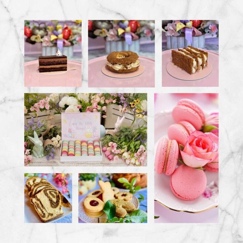 Un pachet complet cu tot ce ai nevoie pentru un Paște dulce și memorabil: macarons, cozonac, biscuiți, bezele și ciocolată artizanală.